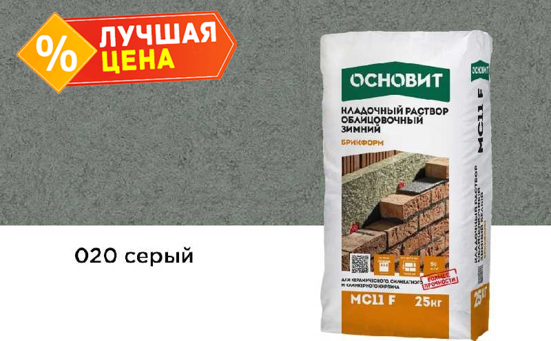 Кладочный раствор ОСНОВИТ БРИКФОРМ МС11 F зимний предназначен для кладки стен из облицовочного кирпича с водопоглощением до 12% с возможностью расшивки швов в момент укладки при температуре окружающей среды и основания от -10 до + 10°С.