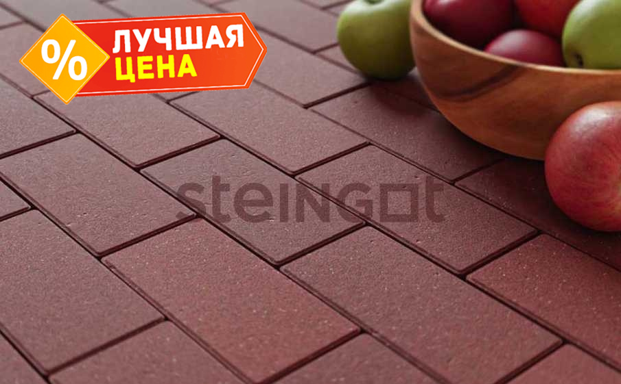 Плитка тротуарная Steingot Моно, Прямоугольник, фаска 1,5х1,5, темно-красный, 200х100х40 мм